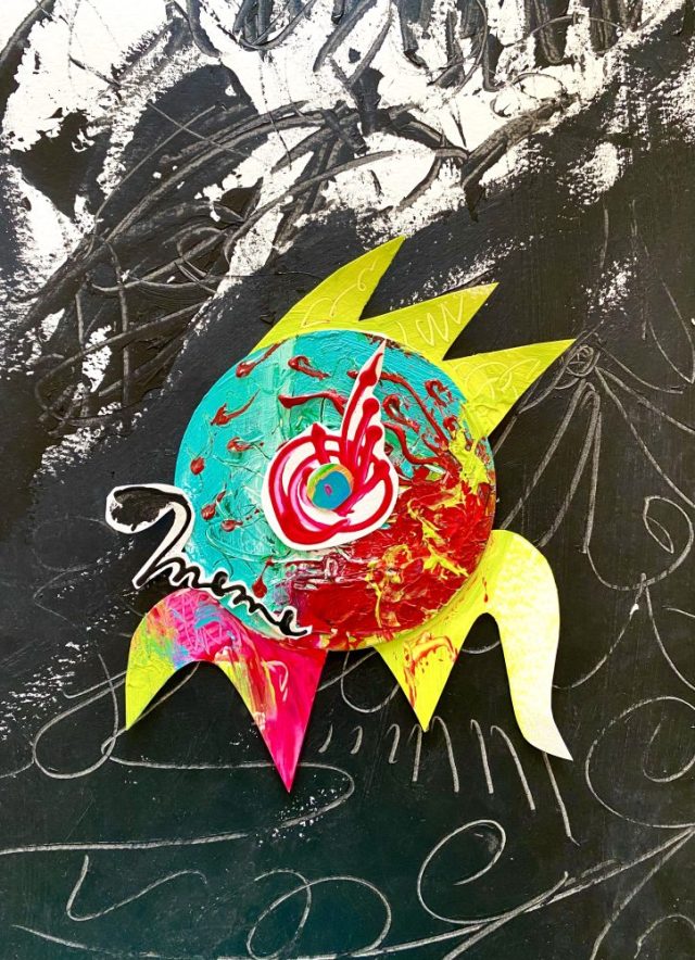 【一日一作プロジェクト】CDアート「水焔(みほのお)」を作った。ここ2、3日、なんとなく食べ物が噛みにくい。どうしたものかと口を開けて、鏡をのぞいてみると