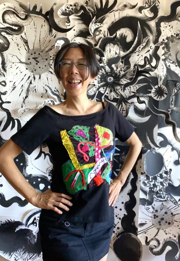 で、できたのがこちら!かわいいー。いい感じ〜。衣アートって、できあがった後、すぐに着られるのがいいよね。よーく見ると