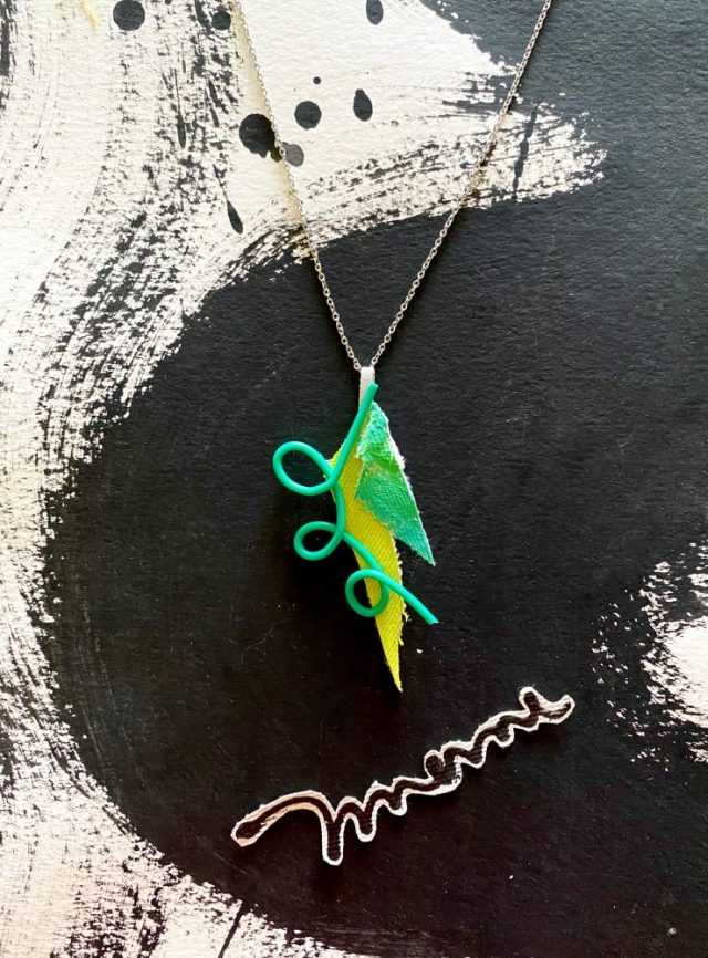ネックレスアート。私は緑色が好き。植物の色、大地の色、若芽の始まりの色。スペインでは「ベルデ・エスペランサ(希望の緑)」と呼ばれる。