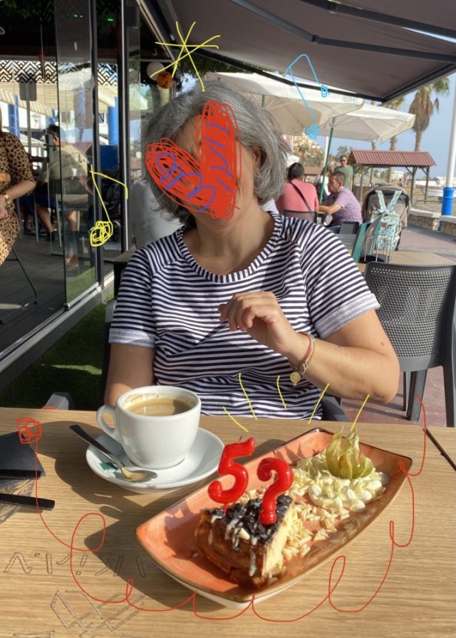 太陽の光をさんさんと浴びながら、テラス席へ。チーズケーキの上にろうそくをセット。そっと炎を吹き消すインマの表情を、テーブル越しに眺めながら、20年以上変わらぬ友情に感謝した。