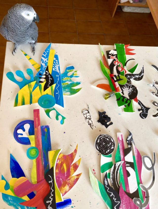 【一日一作プロジェクト】「希望咲(きぼうざき)」を作った。昨日の続き。ペペとハグをし、さっそく車に乗り込む。私は助手席。オウムは後部座席。