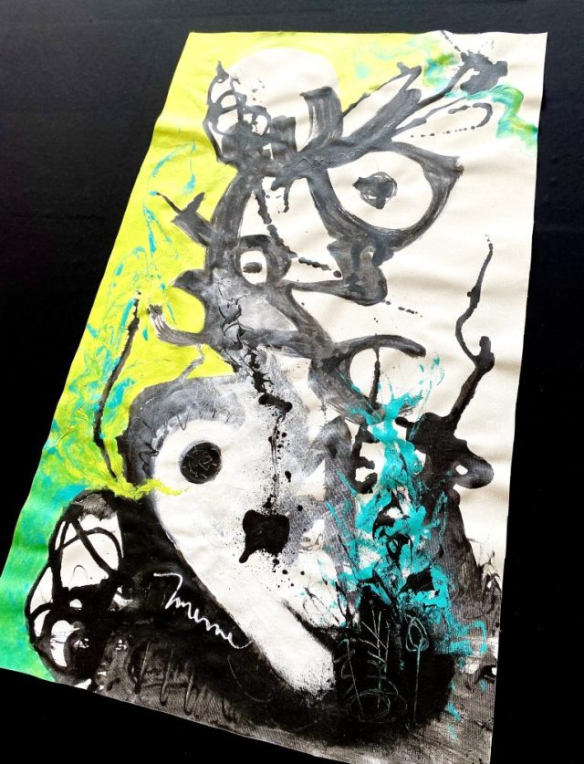 2022年、息絶え絶えの民主主義。よく見ると「DEMOCRACIA(デモクラシア)」の文字が。命を大切にする社会を、強く強く祈って。エールアート。