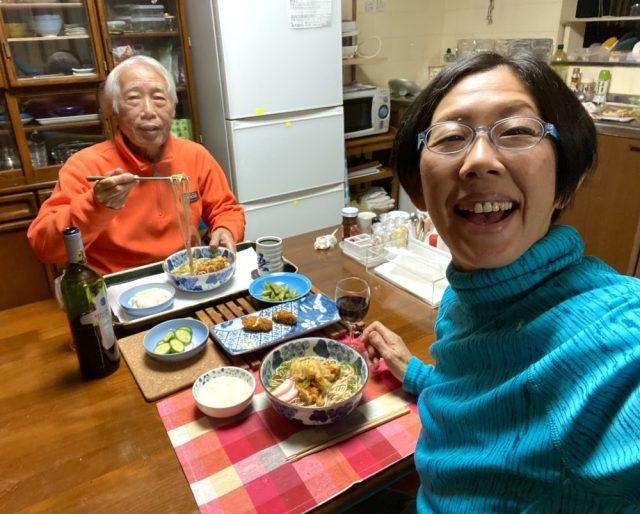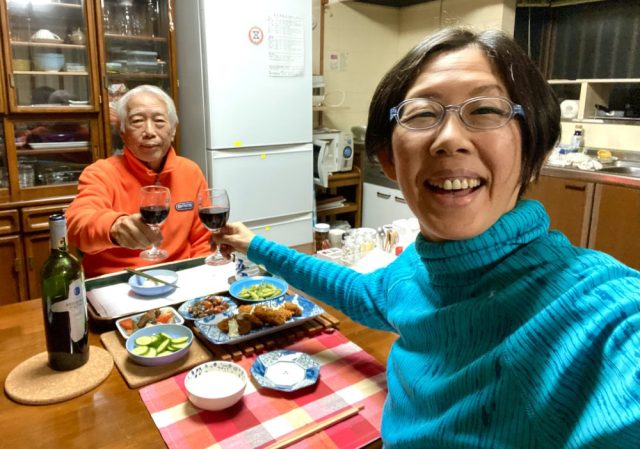まずは、赤ワインで乾杯。あれこれつまみながら、のんびりおしゃべり。今ではふつうの光景だけれど、7年前、ベラの後を追うように母が他界し