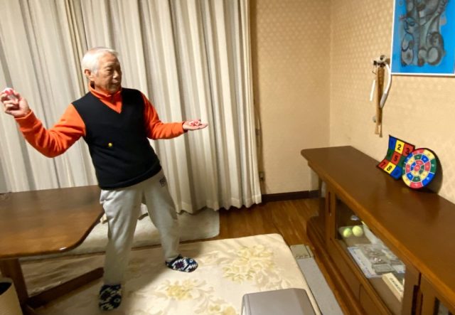 小首をかしげる父に、昨日思いついたばかりの新ゲームを説明。ビンゴにするために「ほしい数字」をボールダーツで出す。1人3球なので、例えば