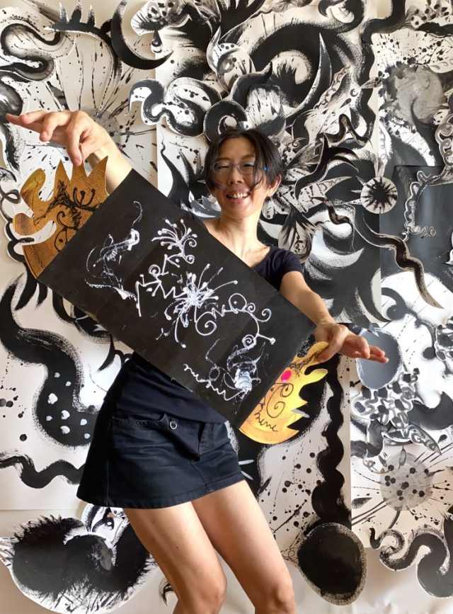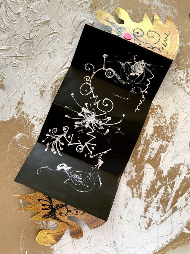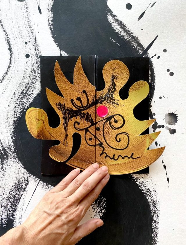 実はこれ、パンフレット(笑)。表紙をカットし、ペイントして、アートに変身。「扉」が開いて、中から飛び出してくる感じが楽しい〜。「アブレテ・セサモ」は「開け!ゴマ」の意。