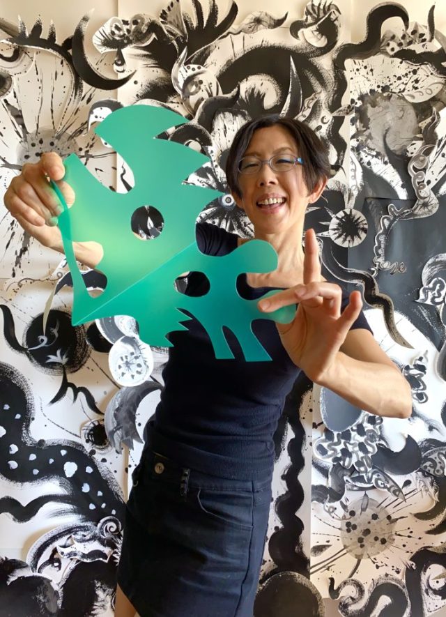 不思議な猫にインスピレーションをもらって。折ってカットして。立体アート。見る角度によって、まるで違った姿に見えるのがおもしろい。「ガト・モンテス」は「山猫」の意。