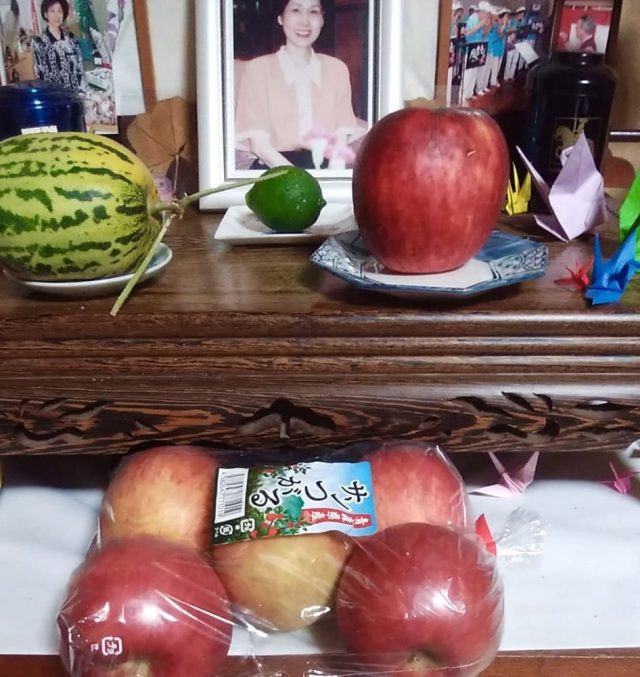 普通の猫より体が長く、一回り大きい。どっしり感。こういう種類なのかしら。思わず写真撮影。家に着いたら、父から写真が送られてきた。お供えコーナー。母とベラのお供え台にはなんと