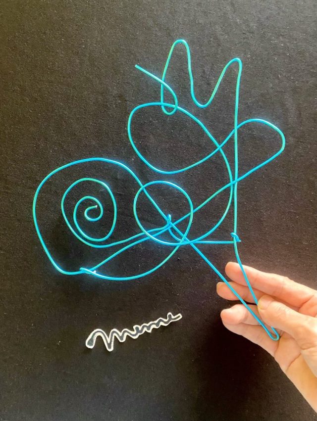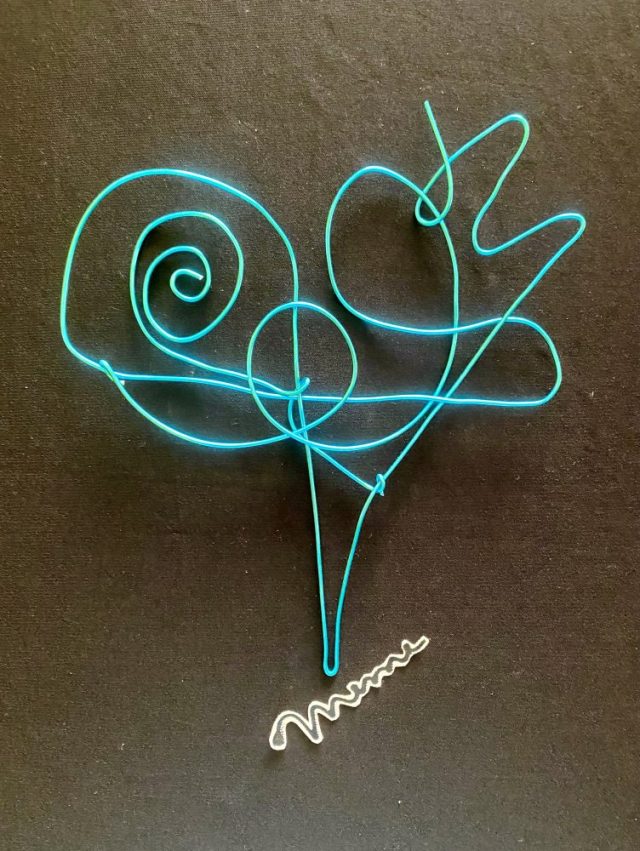 ワイヤーアート。ハート&羽のフォーム。「AMOR(愛)」の文字が隠れている。政府がどんな提案をしても、私たちは「愛」で行動しましょう。