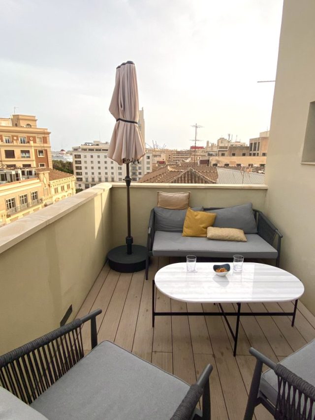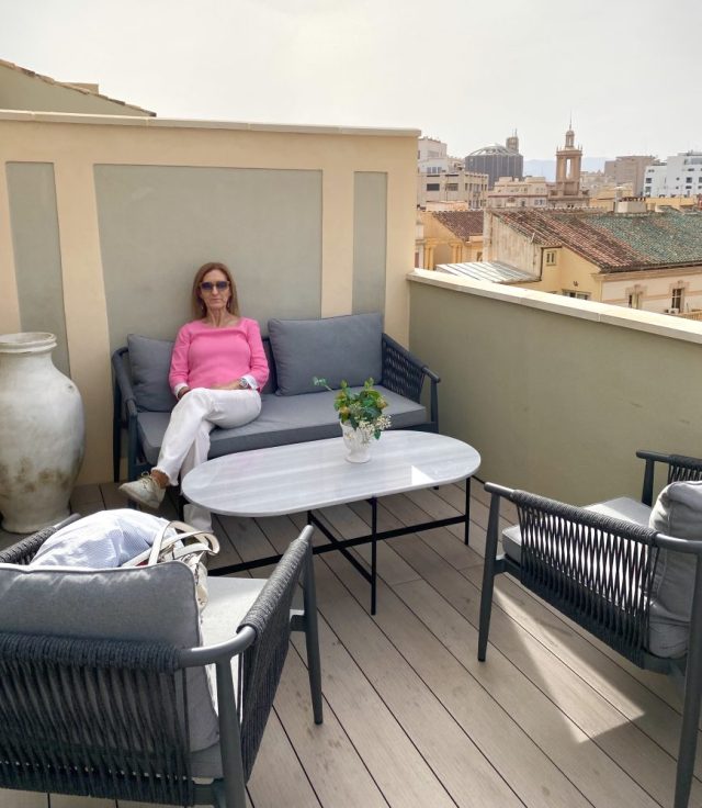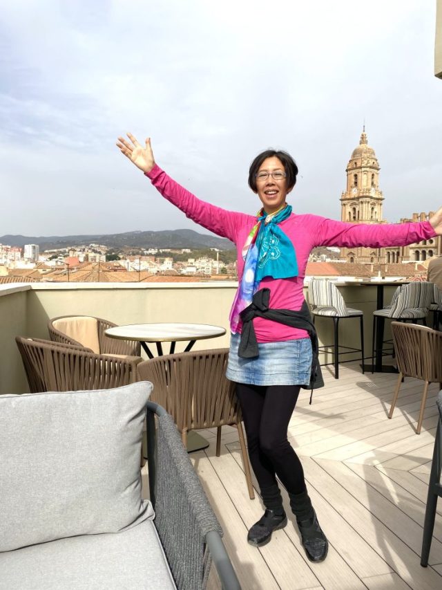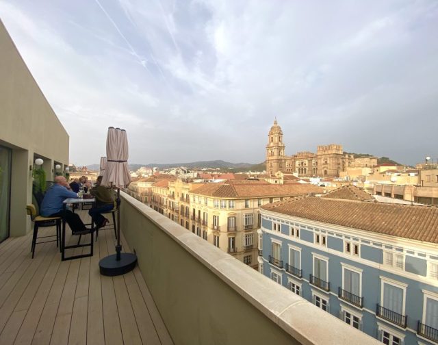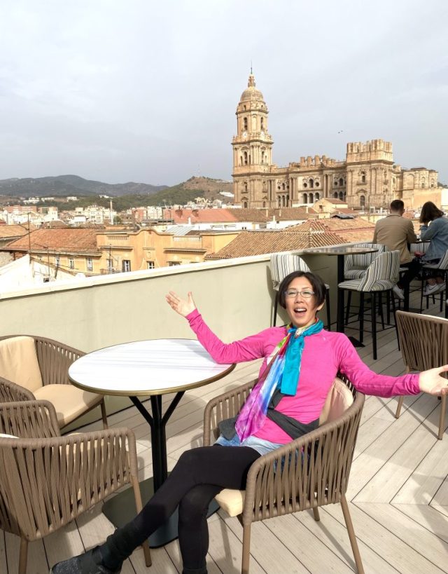 晴天続きのマラガだから、天空カフェは1年中大盛況。雨の多い日本では難しいかも。この日はどん曇りだったけれど