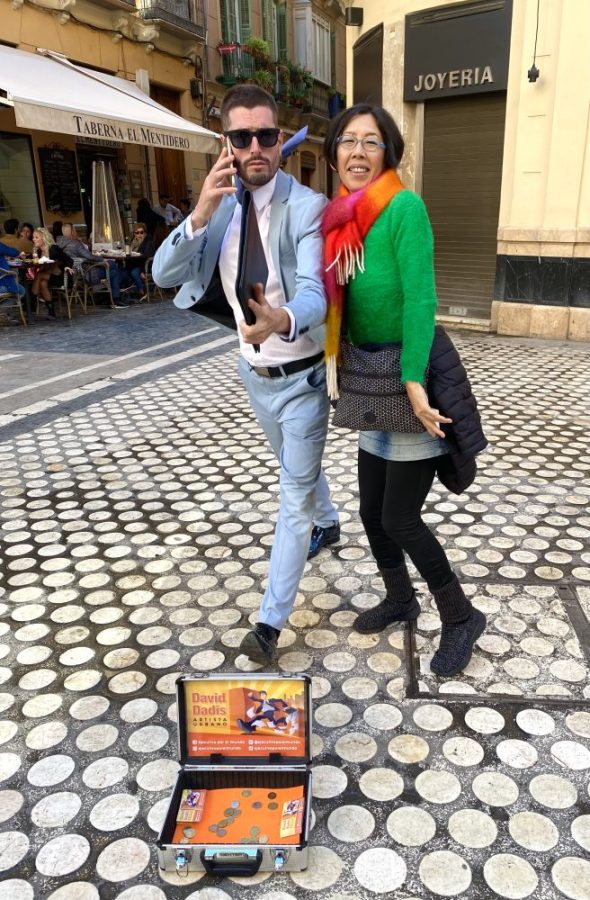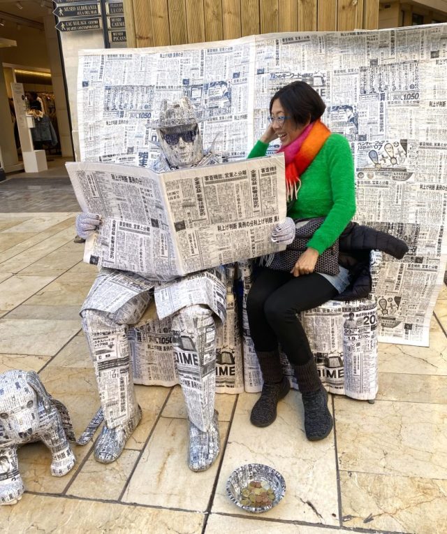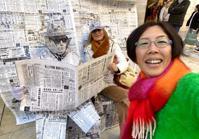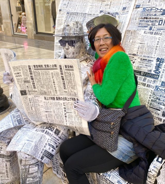 きゃー。すぐに近寄る〜。よく見れば、日本の新聞やん(笑)。アーティストにチップを渡し、一緒に撮影。うれし〜。