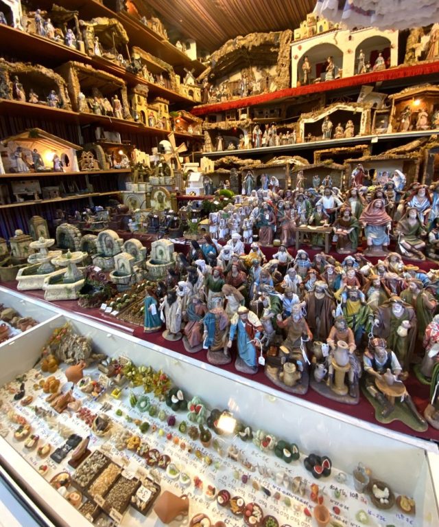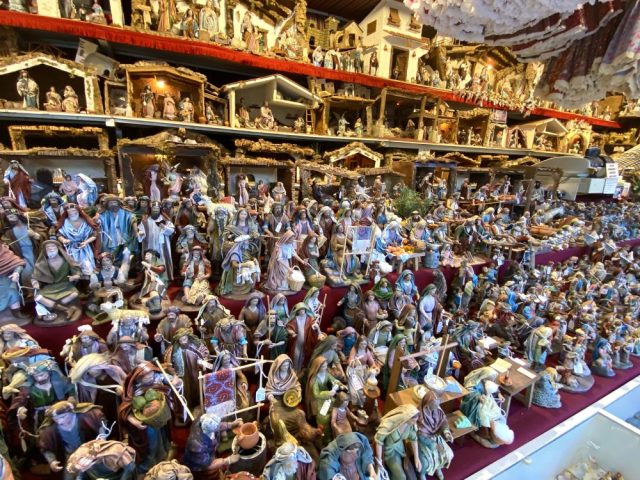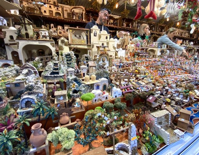 カトリックのスペインでは、ベレン(クリスマス物語を再現する小物)がずらりと店先に並ぶ。人物や景色などのパーツを買って、自分で組み合わせて作り上げる「創作的」なクリスマス飾り。
