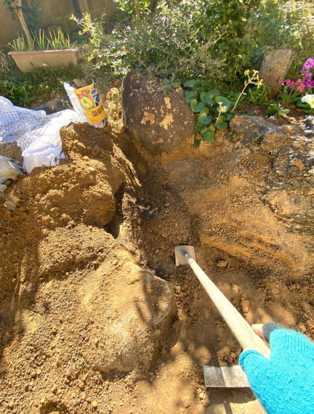 という三層でできており「畑スペース」を作るためには「小石」「小石と土」の層を取り除かねばならない。そこでまず