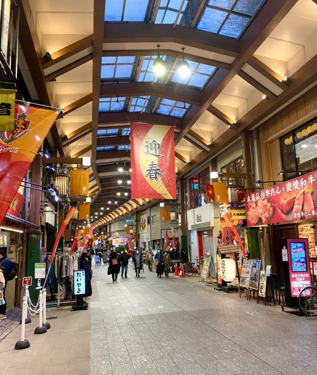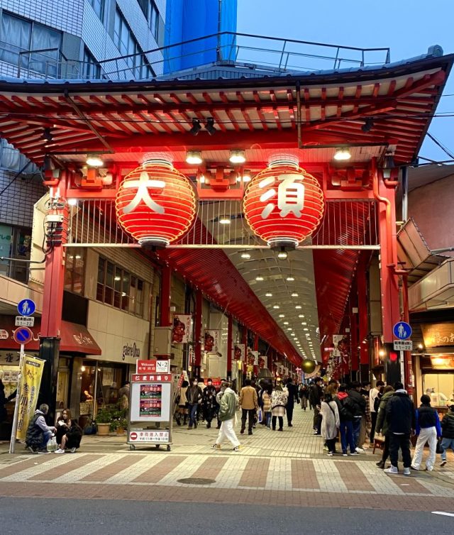 この雑多感、庶民感が大須なのだ〜。アーケード街をそぞろ歩きしていると、おいしそうな匂いがあちこちから。そんな中、呉服店の玄関に吊るされた