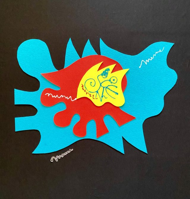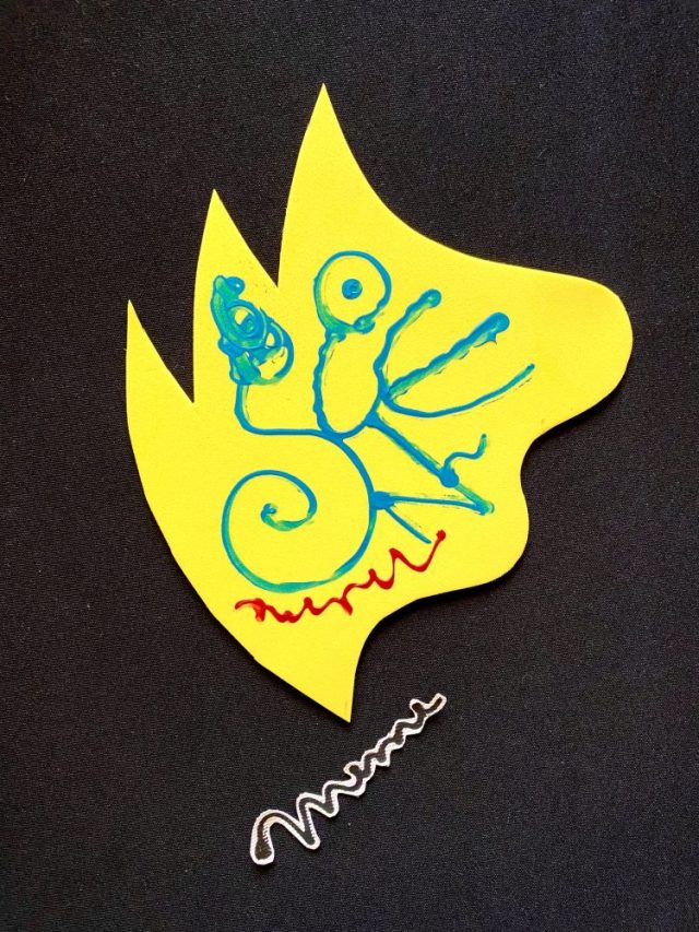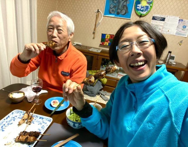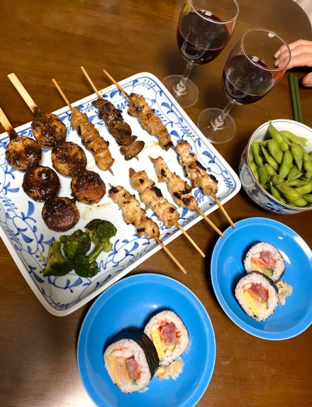 【一日一作プロジェクト】「命咲(いのざき)・1」を作った。駅で買った五平餅、巻き寿司、焼き鳥をお土産に、父と夕食。