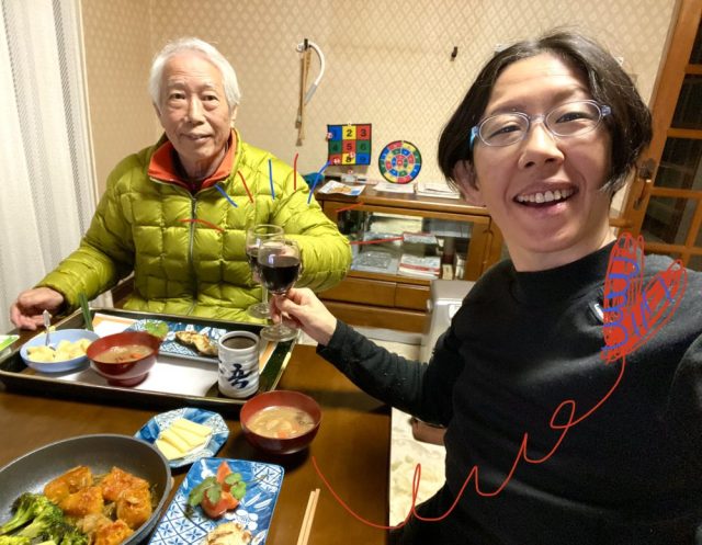 笑。タイマーをこまめにかけて。「大根の味噌汁」「肉じゃがの肉なし(←父の希望)」「ひじきの煮物」など、小鍋料理を同時進行。いやぁ、どうせ台所にいるし〜。