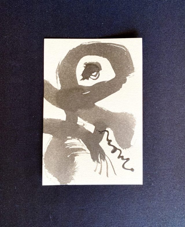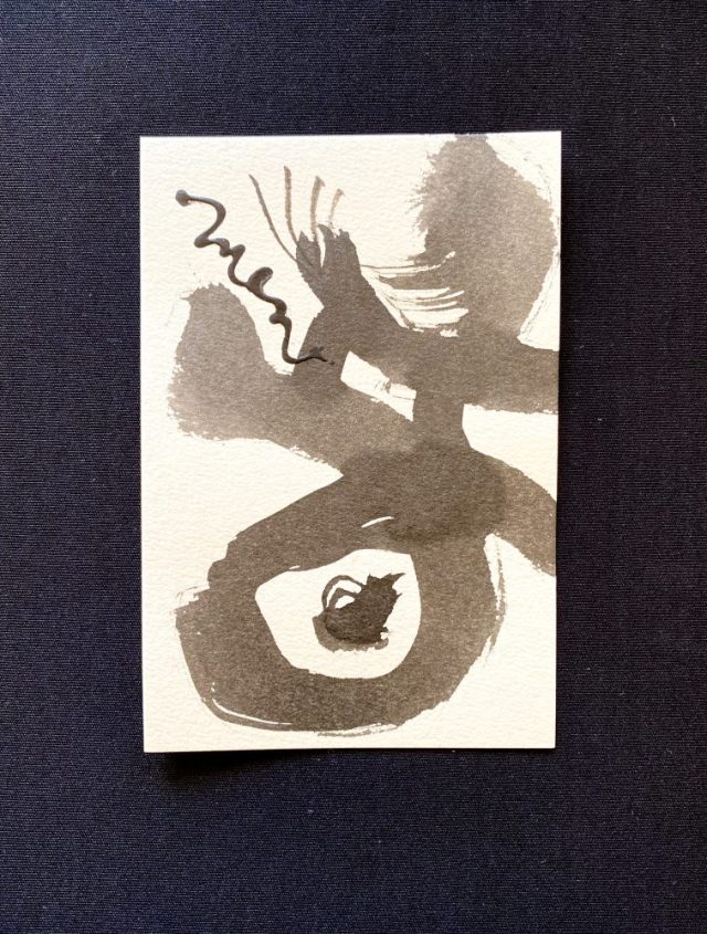 「音」文字。逆さにして見ると、踊ってる〜(笑)。墨の美しさや、和筆の独特の表情に惹かれる。大サイズでペイントできるよう、太い和筆がほしいなぁ。いいアイデアはないものか。