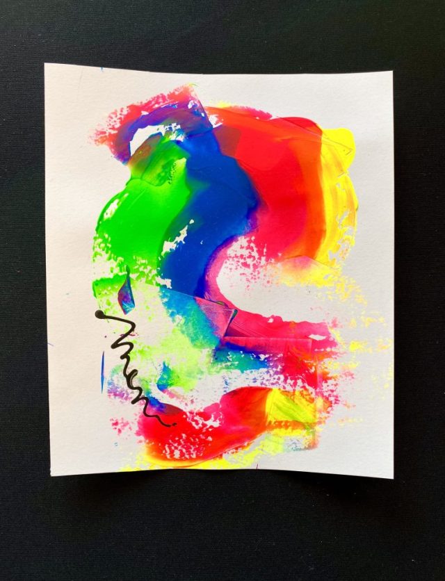 「己」文字が、舞う。反転しても、ひっくり返っても、けして自分らしさを失うことなく。私たちは誰もが「己という虹」を持っている。今日の、最悪な自分でさえ。命は輝く。