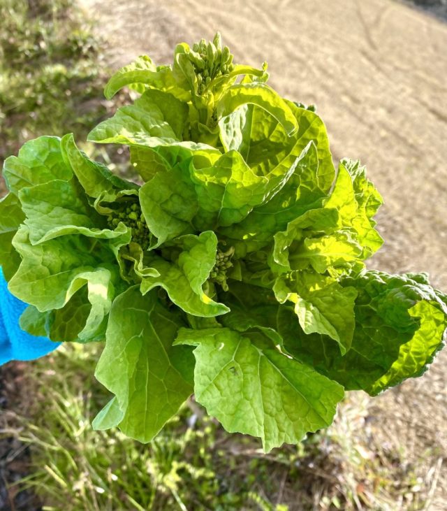 「よかったら菜の花どうぞ」「きゃ〜、ありがとうございます」「無農薬だと採れるのは6〜7割くらい。でも安心して食べられるから」「ですよね!」