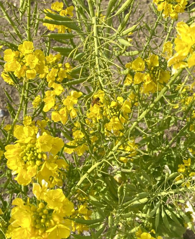 Nさんはテキパキと明確にポイントを教えてくれる。やはり目の前で、実際にやりながら学ぶのはいいな。小松菜、ネギ、ニンニク、キャベツ、パクチー、畑から台所へ。菜の花には蜂たちが〜。