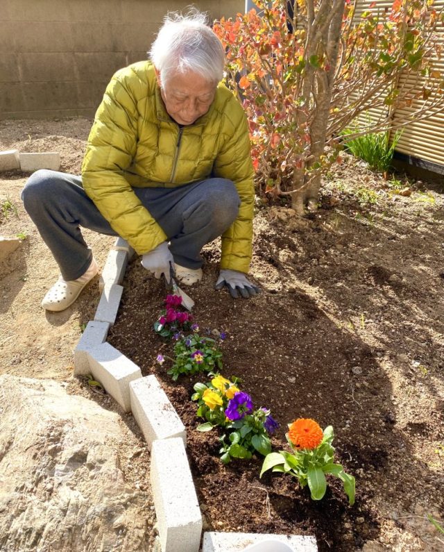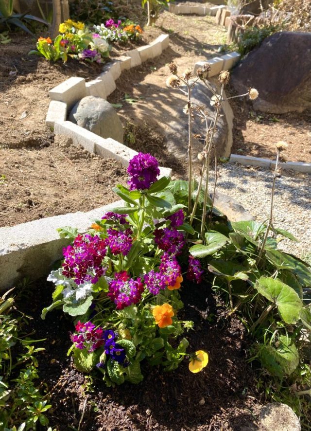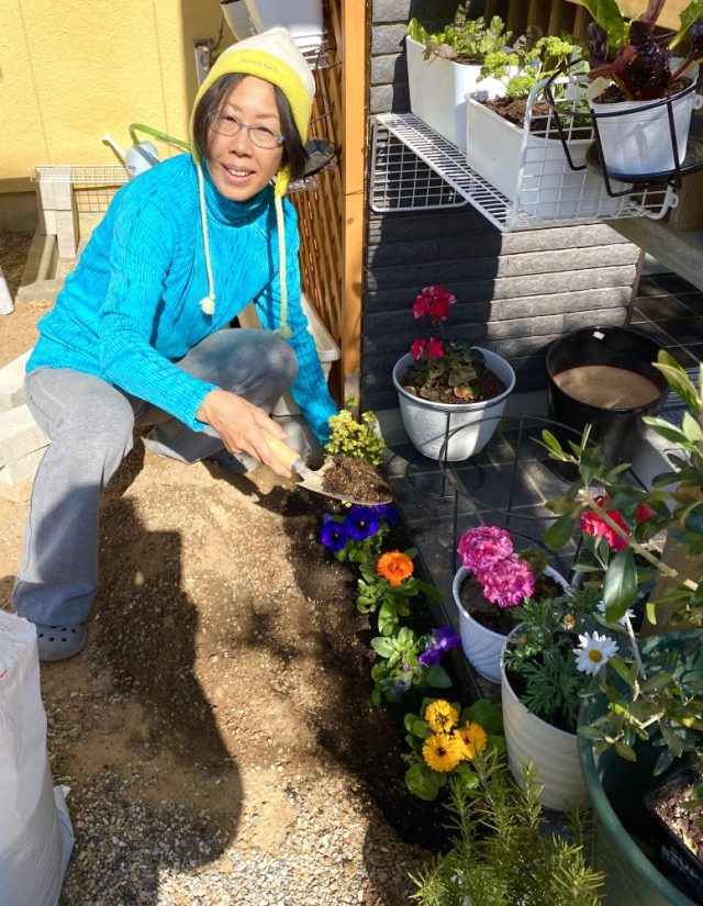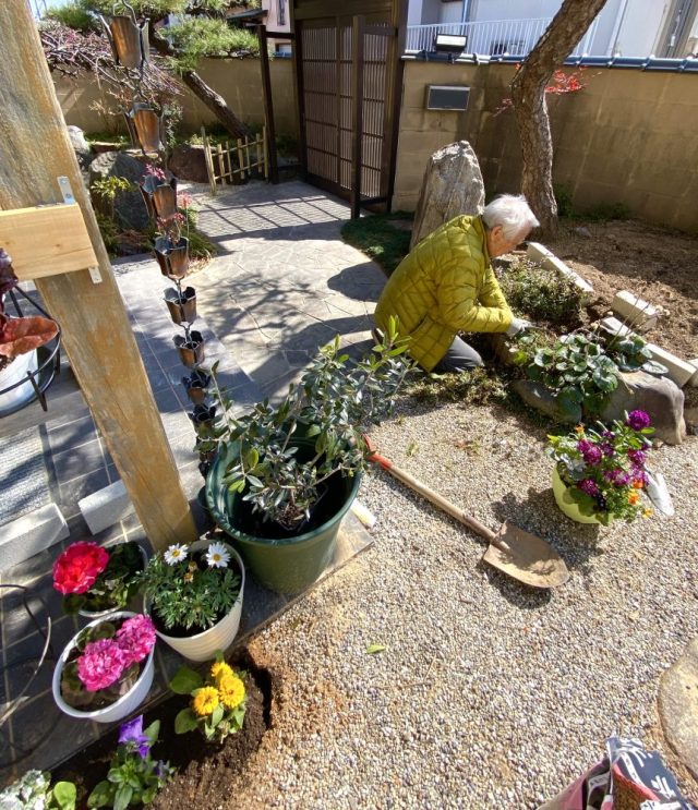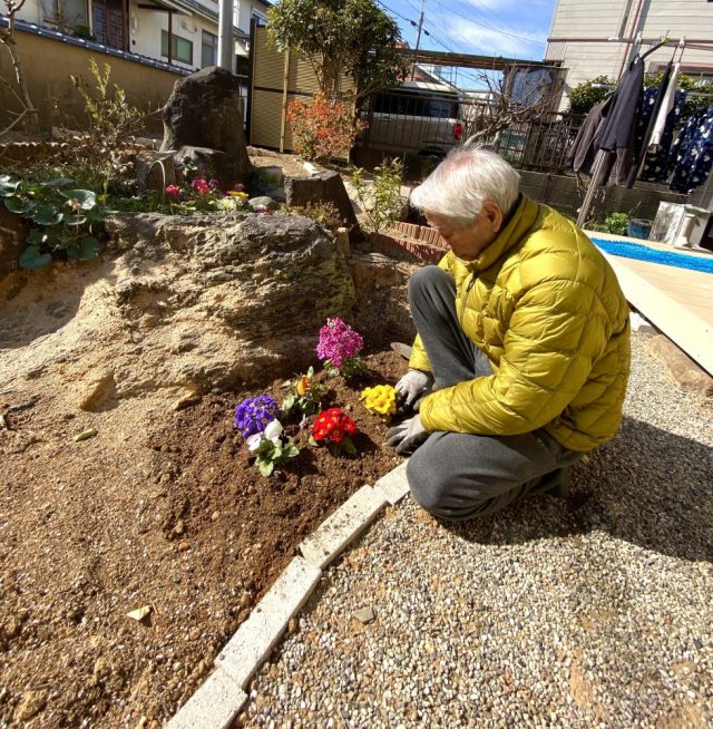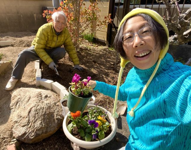 父とおしゃべりしながら植え替え。ひとつひとつ鉢から取り出し、ふかふかの庭土へ移動。順番待ちしている花たちもうれしそう〜。