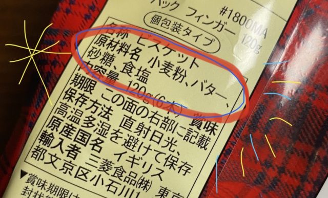 原料の欄をご覧ください。お見事。シンプル。日本のお菓子は、原料の表示を見るとたいてい保存料、調味料、着色料など3、4行は並んでいる。いや、もっとか。