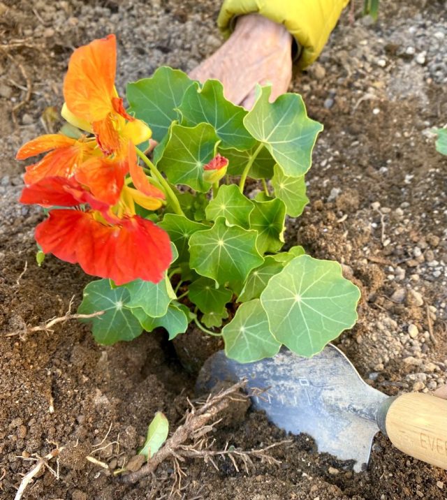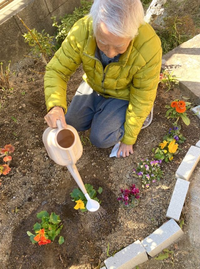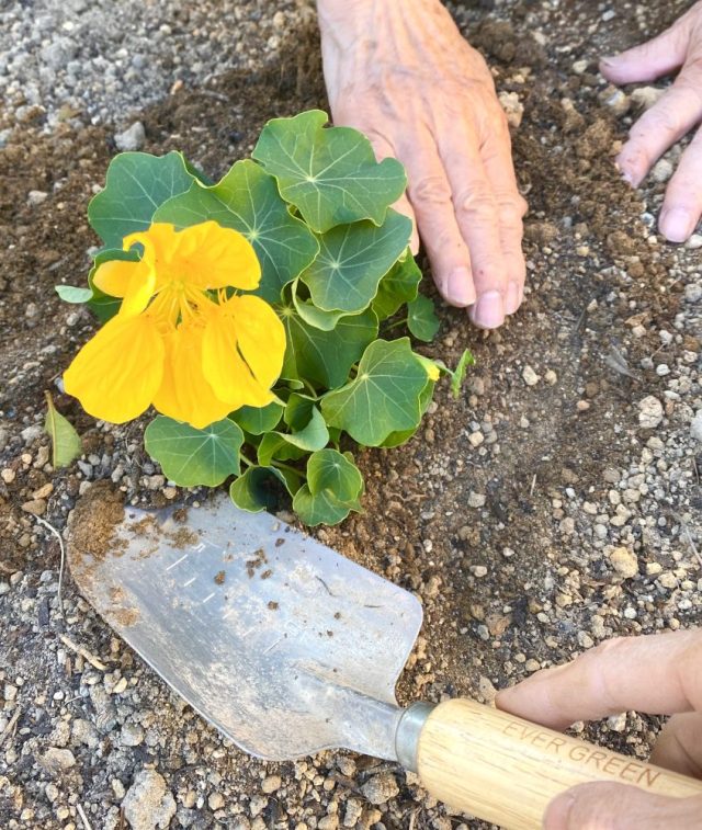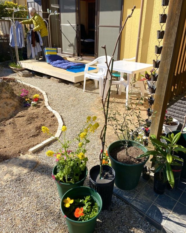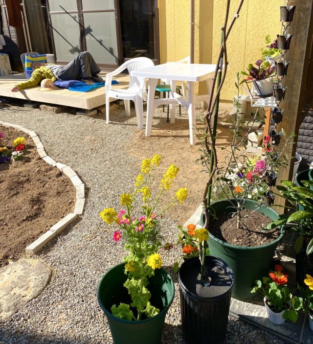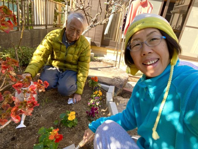買ってきた花たちを、鉢から土へ植え替える。野菜作りと違って、花は気楽〜(笑)楽しむだけ。ゼラニウムを見たら