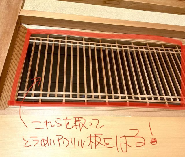 「障子の桟(さん)をカットして、アクリル板を貼ろうと思います」