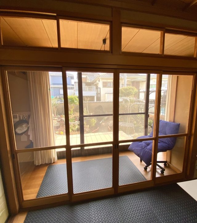 「障子の桟をカットして取り除き、透明のアクリル板をサイズに合わせてカットし、ボンドで貼り付けたんです」「ええっ!!!自力で⁉︎こういう戸だと思ってた。言われなければ全く気づきませんよ」