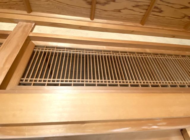 「あの上のところ、カットしてアクリル板を貼りたいんです」「えっ、欄間を取るんですか⁉︎」「らんま、って言うんでしたっけ?あそこから暖冷房した空気が逃げるんです。それに、この細かな板の飾りが目に入ってくるのがいやなの」「そうですか〜」