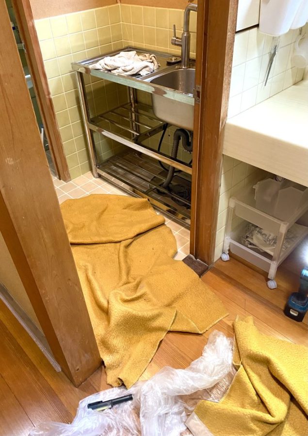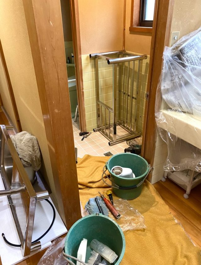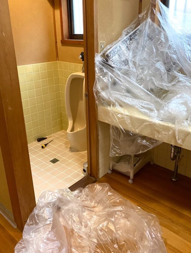 「小便器を取り外し」「ステンレスの流し台を取り付ける」