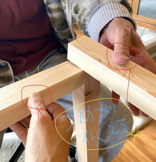 「この辺に支柱を置いて」「横棒はこの辺りかな」