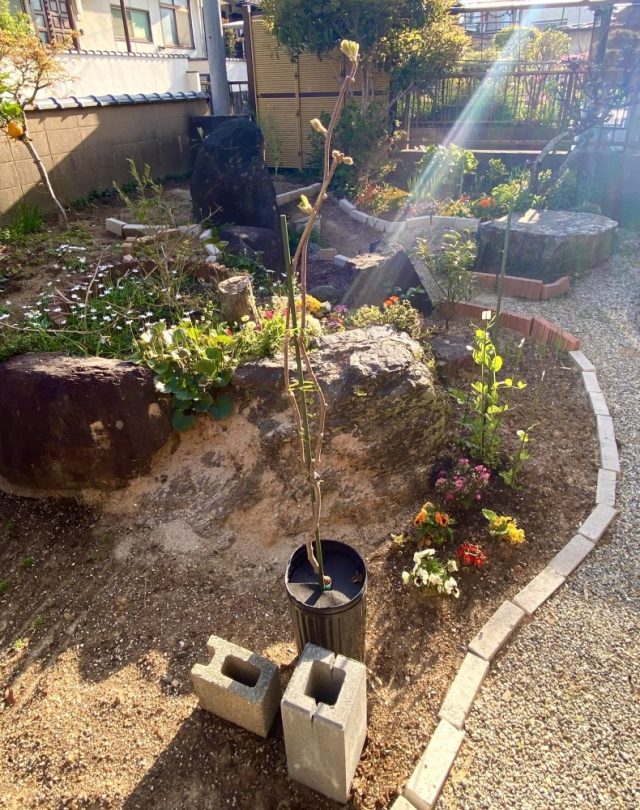私のほしいパーゴラは5〜8万円くらいする。今はとても無理なので、とりあえずキウイがツルを伸ばせるよう
