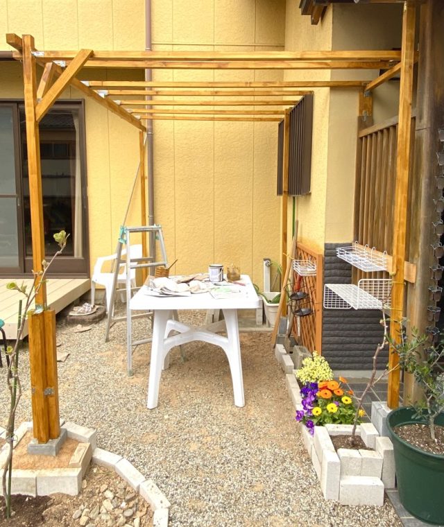 と思ったけど(汗)。最後までやり抜いて、本当によかった。これにて、キウイ棚も無事完了。雨に降られても大丈夫。毎日、作業に駆り出されていた父もお疲れ様でした。