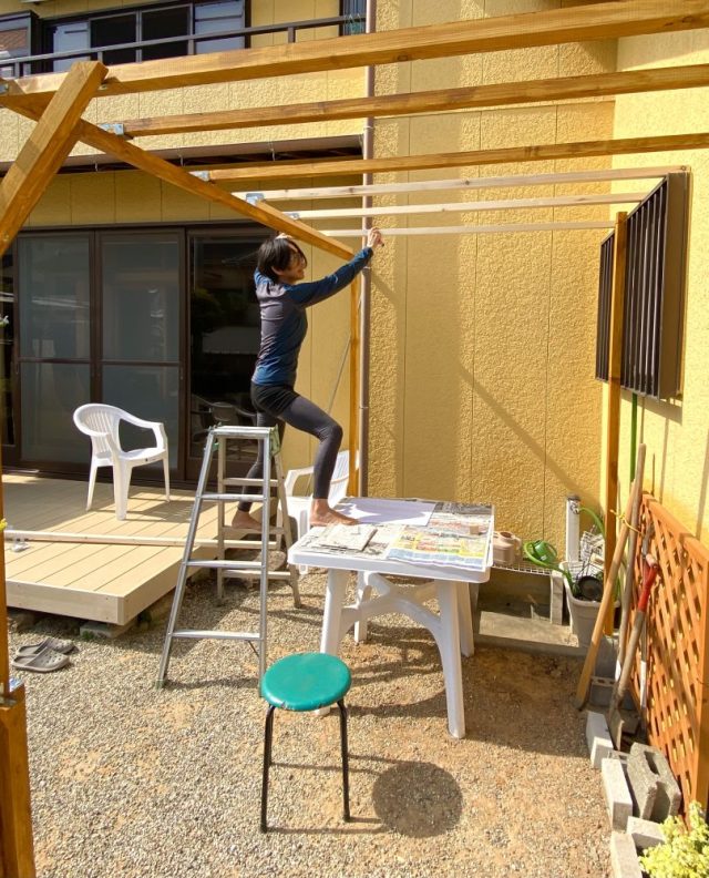 【一日一作プロジェクト】「自分の命をあてにしよう」を作った。「キウイ棚作り」は続く。本日も朝から脚立の上へ。不思議なことに