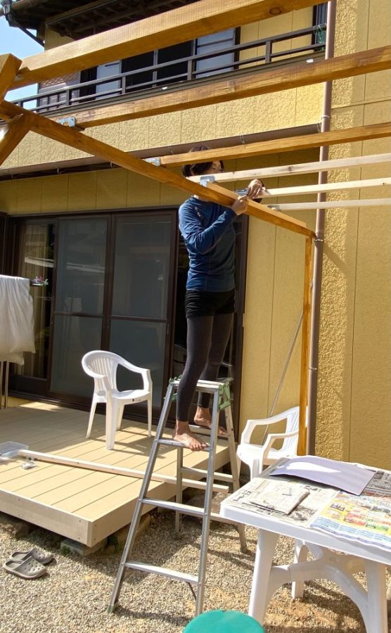 連日「脚立登り降り100回」、それも角材を持ちながら、両手にドライバーや千枚通しを持ちながら。つかまるものが何もなく登り降りするのは、最初はとても不安だった。なのに、今ではどうだろう。