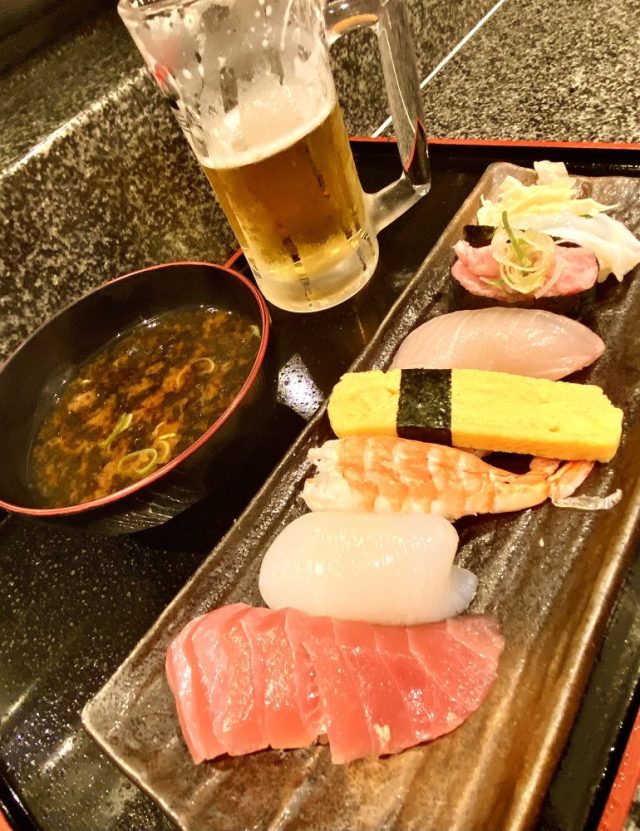 ほっこりカウンターで。これで7ユーロって安っ(←ついマラガ換算)。生ビールもつけて、ゆったり贅沢気分。寿司が食べられるのもあと何回か〜。