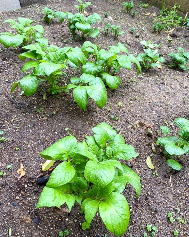 いやはや。成長の早さにびっくり。ふと見ると、ジャガイモやニンジンも「えっ、昨日からもうこんなに?」くらい、日に日に大きくなっている。その横で2ヶ月間、全く動きを見せなかった
