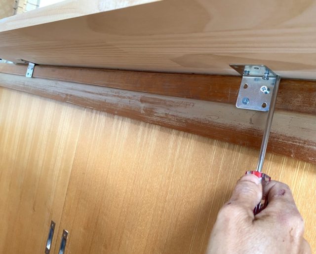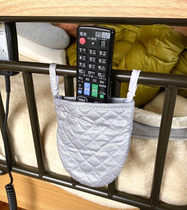 を取り付ける。夜、寝ながらテレビを見て、すっと収納できるように。実は豊橋駅周辺でも「収納ポケット」を探したのだけど、残念ながら見つからず。そこで、台所にあった