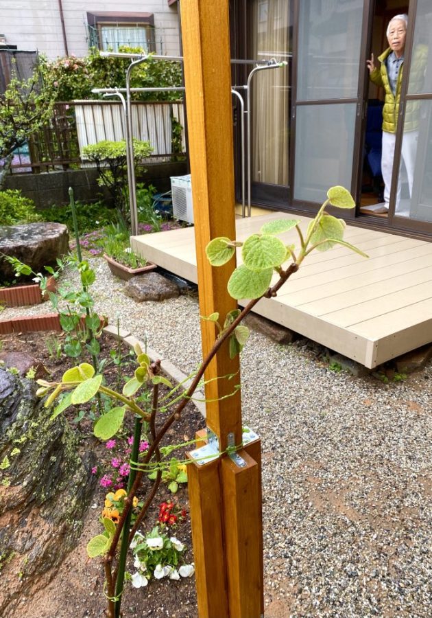 「あれぇ、その木は。えっ?キウイ?」「そうなんだってー。2日でこんなに伸びる⁉︎」