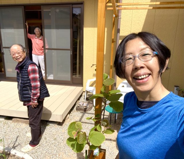 庭に出ると、さっそくTさんがねぎらってくれた。ジャガイモ、ニンジン、キウイ、みかん、いちじく、キンカン。父が果樹を説明していると