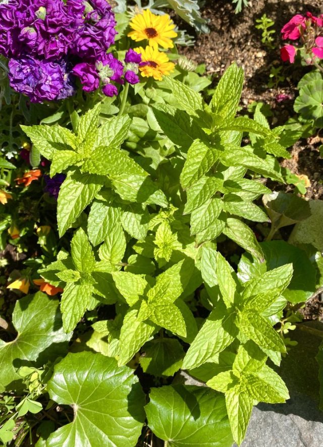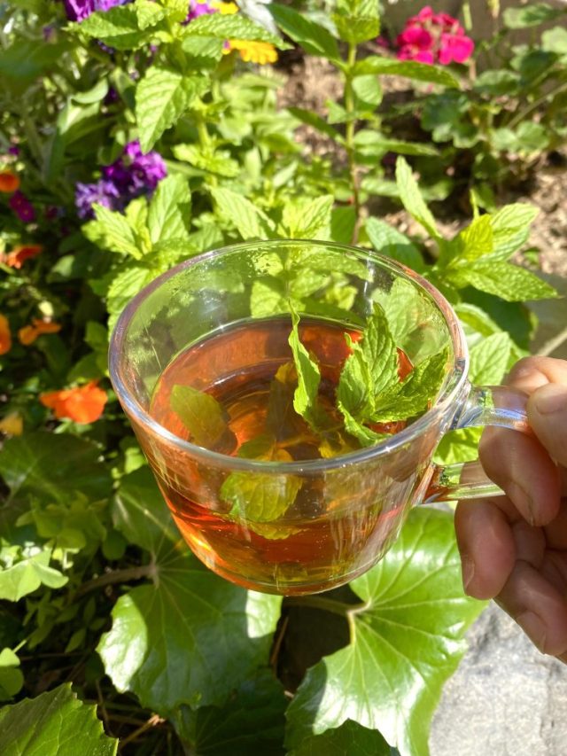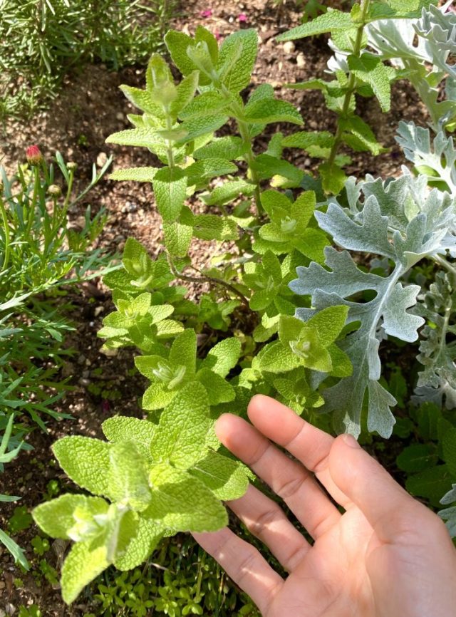 これっしょ(笑)。シンプルライフが心地いい〜(←断捨離とは違う)。さて。ひと休みしに庭へ。さっそくミントの葉をもぎ取ってミントティ。さらに本日も