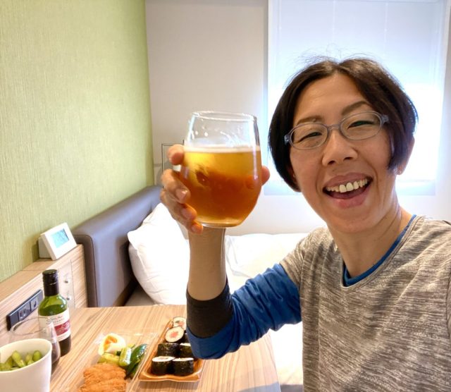これっしょ〜(笑)。あまりにここまでノンストップだったので、だらだらが最高の贅沢。枝豆、チーズ、きゅうりをつつきながらビールで乾杯。