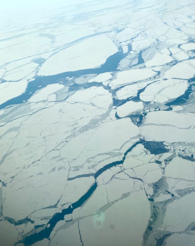氷原というのか。氷の塊がどこまでも、水平線までひたすら続く。氷の裂け目が川のようにぐねぐねと蛇行し、熱帯ならぬ氷原のアマゾン。さっそくルートマップを確認。