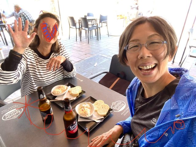 クリスティーナが車で送ってくれることにり、4ヶ月ぶりに再会。思わずハグに力がこもる。2時間ほどで用事をすませ、バルのテラス席へ。タパスをつまみながらビールで乾杯。