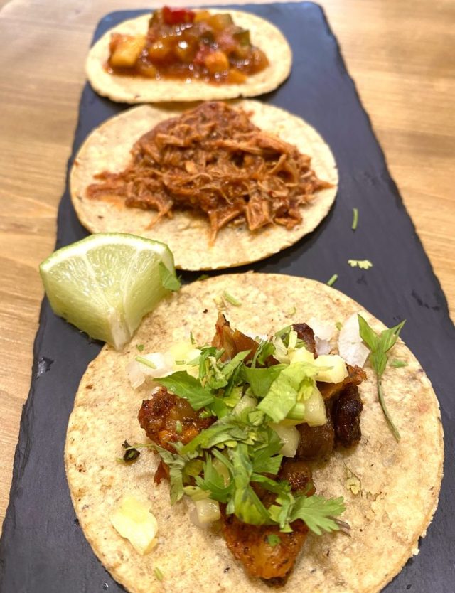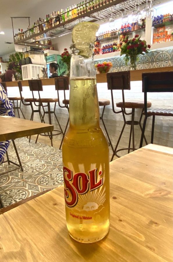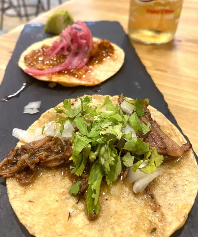 けっこうな賑わい。いい香りが〜。まずは、メキシカンビールで1人乾杯。うまっ。この日は歩くこと12000歩。緊張感から解放された後のビールは格別。