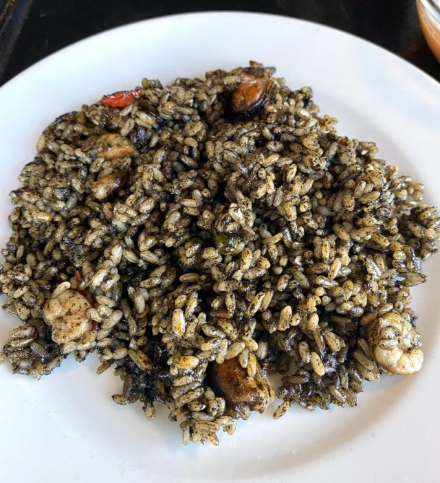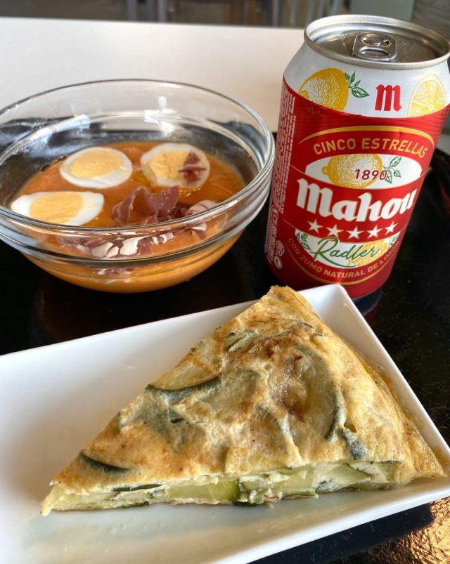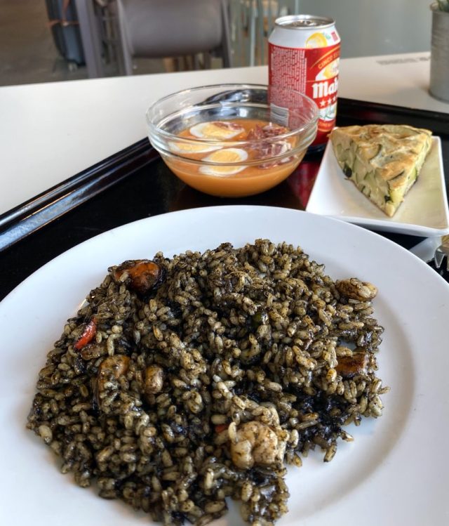 ささっと。のつもりが、こうなった(笑)。イカ墨のパエジャ、ズッキーニとチーズのオムレツ、サルモレホ、そしてビール。さすがスペイン。駅のカフェがこれ。