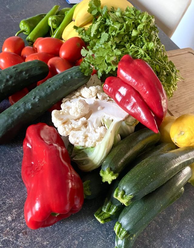 へとへとになって家に着くと、ハビ吉がまた大量に野菜を買い込んでいた(写真)。めちゃおいしそうだけど、2人で食べきれるん?