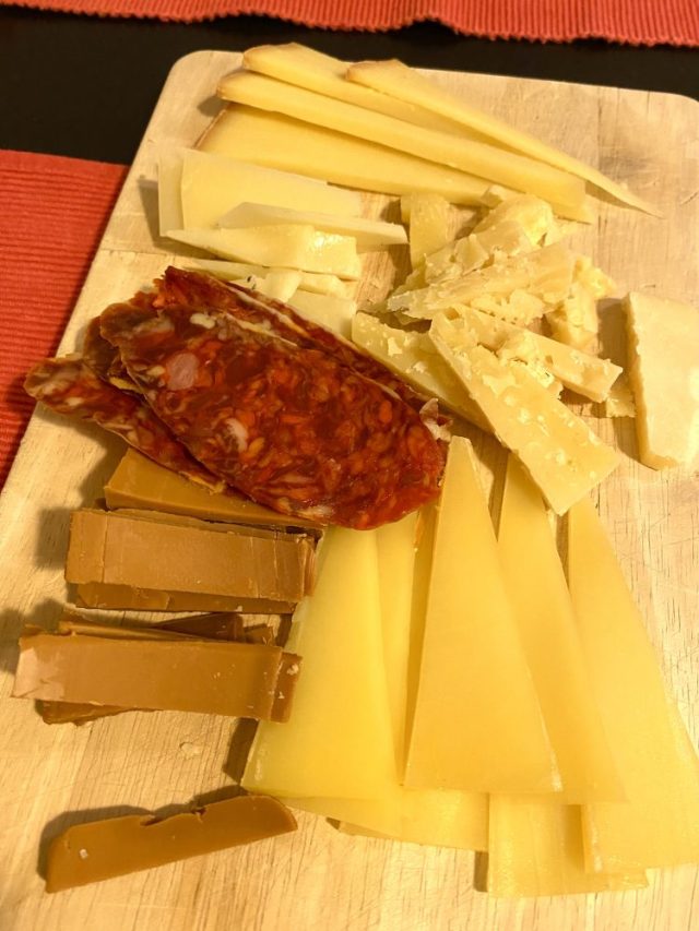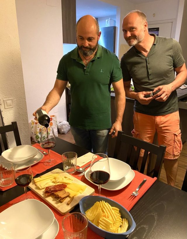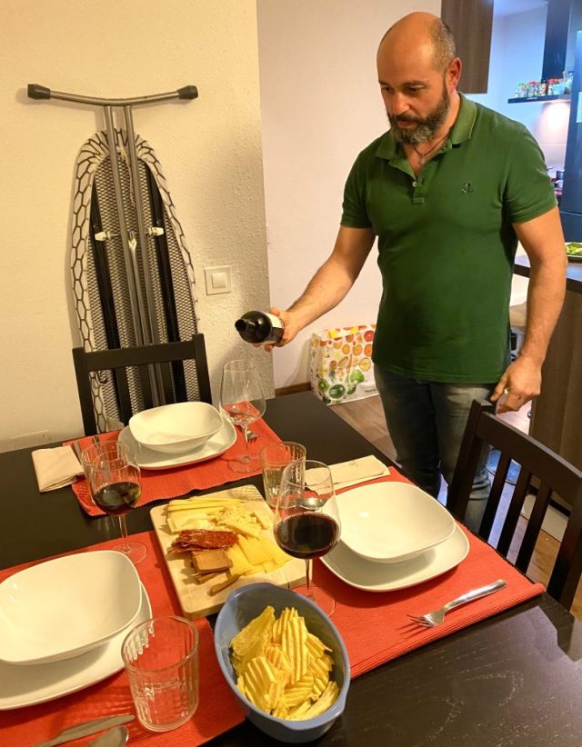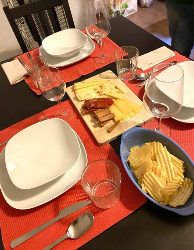 「まずはチーズから始めようか」「これはスイス産。こっちはオーストリアの。こちらがスペイン産ね」「赤ワインに合いそう〜」