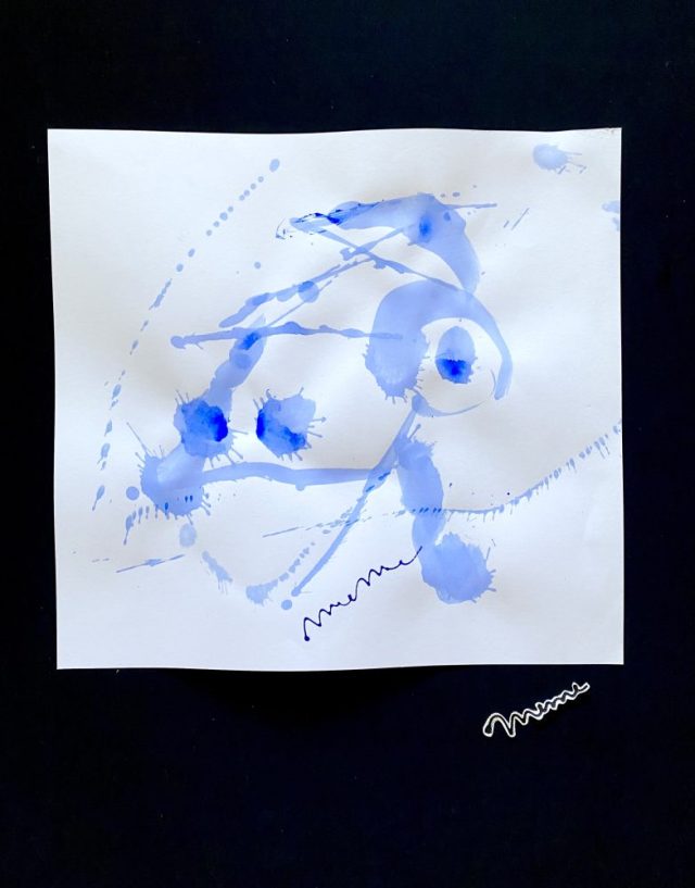 「PAZ(平穏)」「AMOR(愛)」文字が、しぶきをあげて飛びはねる。平穏も愛も、生きもの。エネルギー。流動的で、一箇所にとどまることはない。常に変化の中にある。