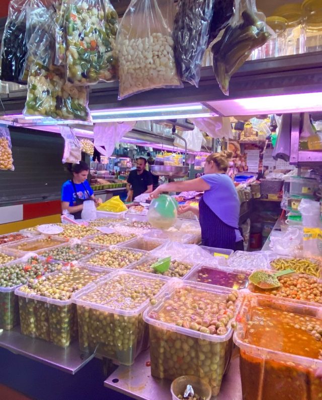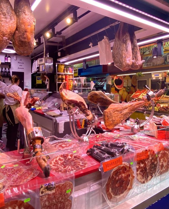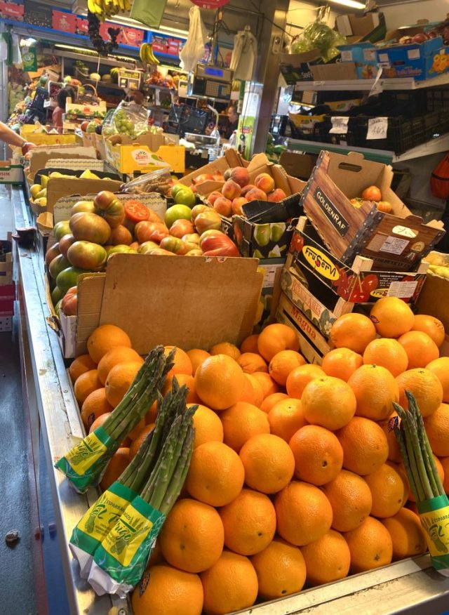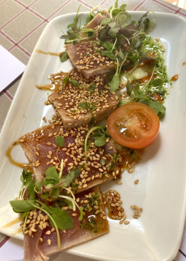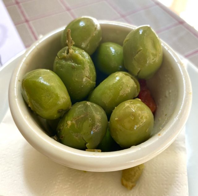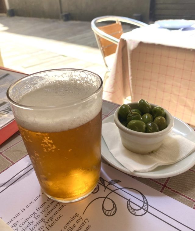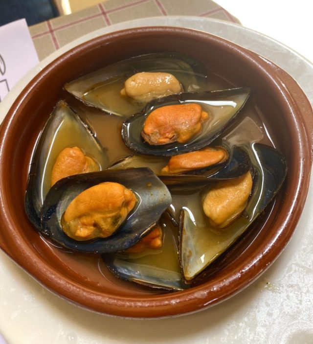 こじんまりとしたかわいらしいメソンを発見。日陰のテラス席が、残り2テーブルというところにギリギリで滑り込む〜。タパス形式で、少しずついろいろ味わいたい私たちに、お店のお兄さんが